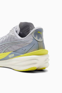 PRODUCT STORY Deviate 4 isn't just fast – its too fast. 15g lighter than its predecessor, this high-performance shoe is built for runners who refuse to slow down. Featuring enhanced NITROFOAM™ technology for even better energy return, a breathable engineered mesh upper, and a carbon composite PWRPLATE, Deviate 4 gives you the edge you need to push through tempo runs or crush race day. Go further. Go faster. FEATURES & BENEFITS - The upper of the shoes is made with at least 20% recycled materials. DETAILS - Style: 312123_03 - Color: Vibrant Silver-Lux Lime - Width: Regular - Toe type: Rounded - Fastener: Laces - Heel type: Flat - Cushioning: Max - PWRPLATE provides propulsion - PUMAGRIP outsole offers multi-surface traction - Weight: 250g (size UK8), stack height: 38mm/30mm - Heel-to-toe drop: 8mm - Pronation: Neutral MATERIAL INFORMATION - Midsole: 100% Synthetic - Sockliner: 100% Textile - Outsole: 100% Rubber - Upper: 67% Textile, 33% Synthetic - Lining: 100% Textile