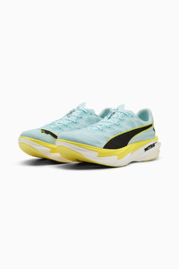 PRODUCT STORY When fast isn’t fast enough, you go beyond. The Deviate NITRO™ Elite 4 is built for race day – those moments when every second counts. Upgraded NITROFOAM™ ELITE delivers elite responsiveness for unbeatable speed, while a reengineered PWRPLATE channels every ounce of energy forward. 12% lighter than its predecessor, Deviate Elite 4 will keep you light, fast, and locked on your goal pace. Every detail is engineered to take you beyond fast. FEATURES & BENEFITS - NITROFOAM™ Elite: Premium performance foam technology that provides pinnacle responsiveness in an extremely lightweight package - PWRPLATE: Carbon fibre plate engineered to maximize energy transfer and delvier a propulsive ride - PUMAGRIP: Durable performance rubber compound designed for all-surface traction DETAILS - Style: 312127_03 - Color: Fresh Water-Lemon Crush-PUMA Black-PUMA White - Width: Regular - Toe type: Rounded - Closure: Laces - Stack height: 40mm/32mm - Heel type: Flat - Weight: 170g (size UK8)? - Cushioning: Max - Heel-to-toe drop: 8mm - Pronation: Neutral - ULTRAWEAVE for an ultra-lightweight feel MATERIAL INFORMATION - Midsole: 100% Synthetic - Sockliner: 100% Textile - Outsole: 98% Synthetic, 2% Rubber - Upper: 74% Textile, 26% Synthetic - Lining: 100% Textile