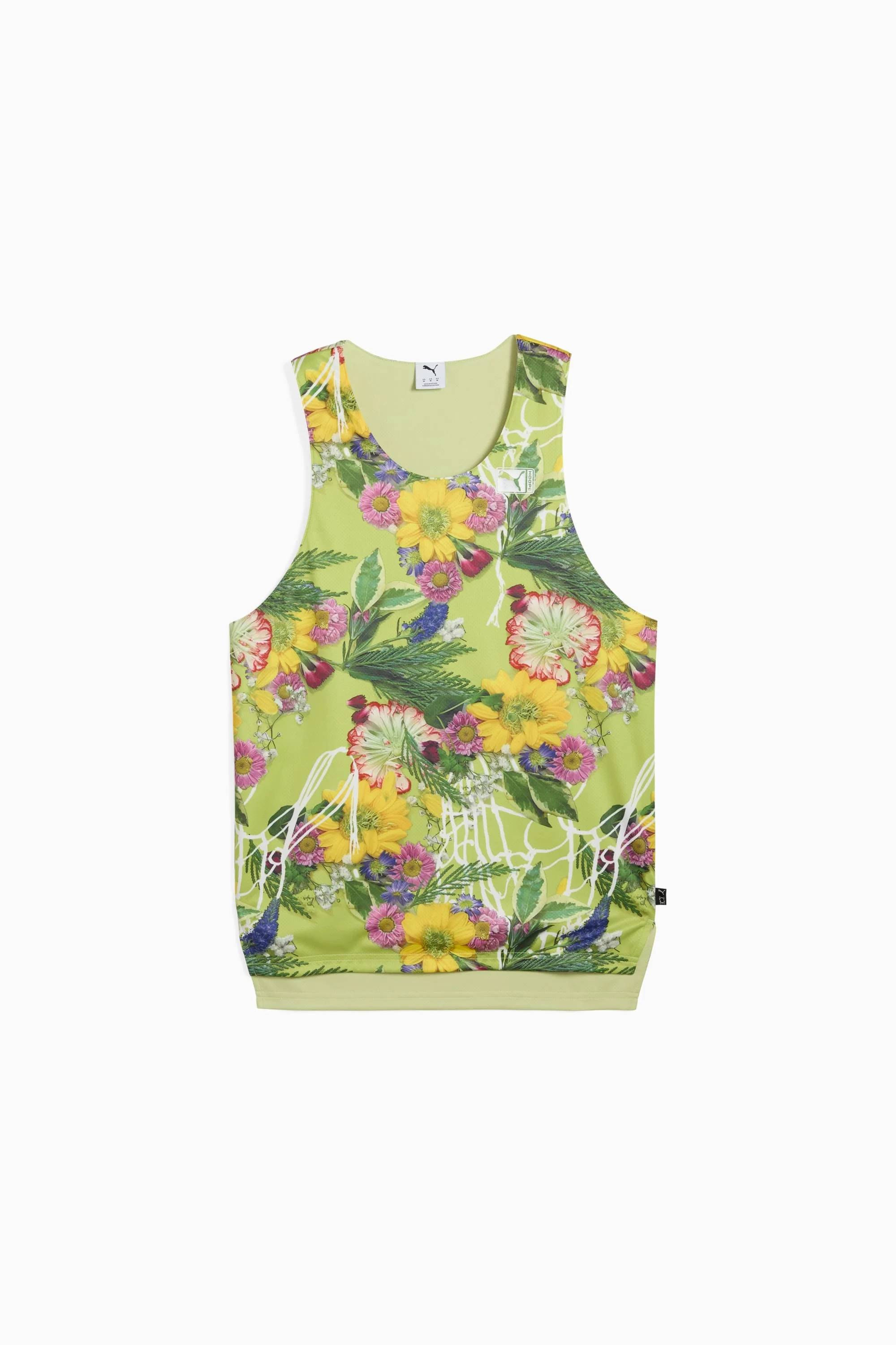 PRODUCT STORY Embrace basketball-inspired style with this regular-fit jersey. Featuring poly mesh for breathability and bold PUMA basketball branding, it's perfect for the court or casual hangouts. Feel the energy and make every moment unforgettable. FEATURES & BENEFITS - As part of the RE:FIBRE program, this garment is made of at least 95% recycled material from textile waste and other used materials. DETAILS - Style: 630906_01 - Color: Pistachio Green-AOP - Regular fit - Main material: Double face jacquard - Regular length - Crew neck - Sleeveless MATERIAL INFORMATION - Shell: 100% polyester - INNER SHELL: 100% polyester