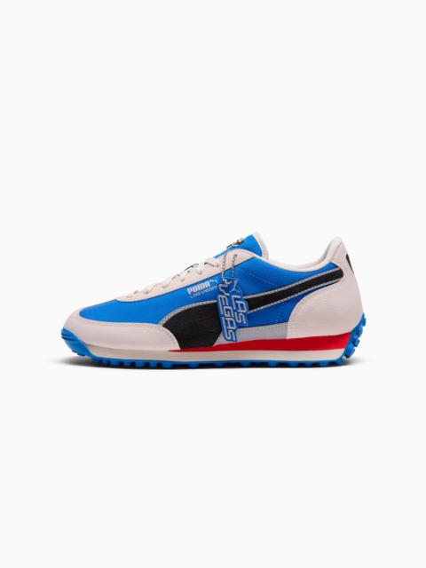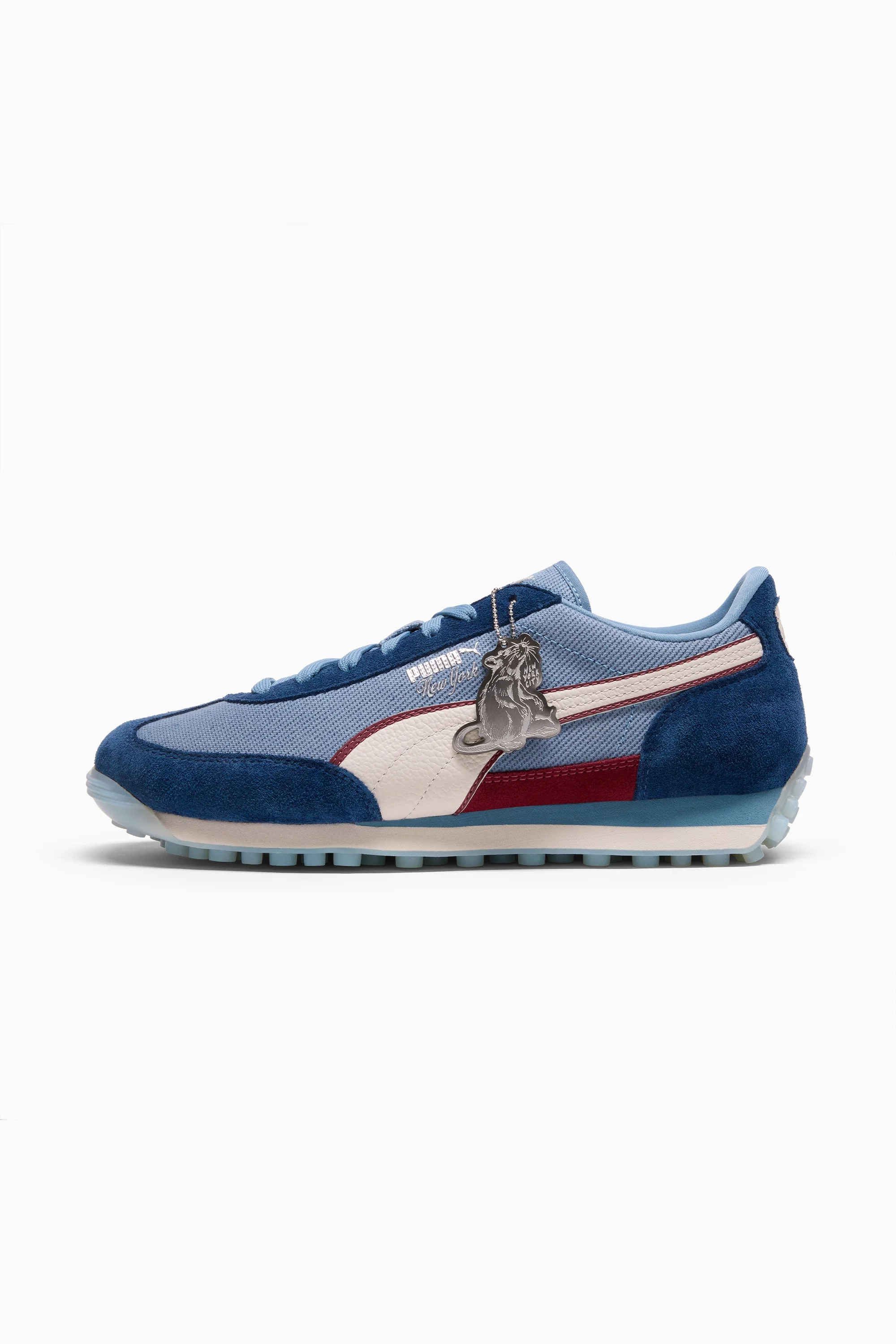 PRODUCT STORY Easy Rider was born in the late '70s, when running transitioned from the track to the streets. Today, the retro runner returns for the streetwear world, keeping its classic slim profile and vintage vibes intact. This timeless silhouette is now available in nostalgic colors with an updated midsole. FEATURES & BENEFITS - PROFOAM: Lightweight EVA designed to cushion your landing and propel your next step DETAILS - Style: 404541_01 - Color: Persian Blue-Cool Blue-Ruby Shimmer - Width: Regular - Toe Type: Rounded - Fastener: Laces - Main material of upper: Nylon with suede overlays - Heel type: Flat - Lining: Textile - Rubber outsole MATERIAL INFORMATION - Sockliner: 100% Textile - Outsole: 100% Rubber - Upper: 66.56% Leather - cow, 33.44% Textile - Lining: 100% Textile