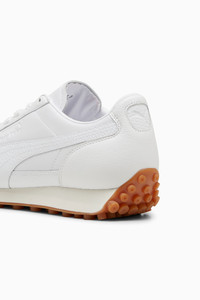 PRODUCT STORY The PUMA Easy Rider was born in the late '70s, when running made its move from the track to the streets. Today it's back with its classic slim profile and vintage vibes intact. This version, featuring a leather upper and tumbled leather overlays, is sure to become your go-to for bringing a touch of easy, retro-style to everyday looks. FEATURES & BENEFITS - PUMA's leather products support responsible manufacturing via the Leather Working Group: www.leatherworkinggroup.com - ProFoam: Lightweight EVA designed to cushion your landing and propel your next step DETAILS - Style: 399029_02 - Color: PUMA White-Frosted Ivory - Regular fit - Leather upper - Leather toe, eyestay, and heel overlays; tumbled leather quarter and medial overlays - Synthetic collar lining - Lace closure - EVA midsole - Rubber outsole - Tumbled leather PUMA Formstrip and heel FOT - PUMA branding details