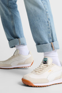PRODUCT STORY The PUMA Easy Rider was born in the late ‘70s, when running made its move from the track to the streets. Today it's back with its classic slim profile and vintage vibes intact. This version, featuring a textile base and suede leather overlays, is sure to become your go-to for bringing a touch of easy, retro-style to everyday looks. FEATURES & BENEFITS - Leather Working Group (LWG): PUMA’s leather products support responsible manufacturing via the Leather Working Group. www.leatherworkinggroup.com DETAILS - Style: 399028_18 - Color: Alpine Snow-PUMA White-PUMA Gold - Nylon base - Suede leather quarter and medial overlays - Suede leather toe and heel overlays - Suede leather eyestay - Textile tongue with woven PUMA branding label - Textile collar lining - Textile sockliner with foil printed PUMA branding - Synthetic leather FOT with debossed and foil printed PUMA Cat Logo - Foil printed PUMA and Easy Rider branding details - Synthetic leather PUMA Formstrip MATERIAL INFORMATION - Midsole: 100% Synthetic - Sockliner: 100% Textile - Outsole: 100% Rubber - Upper: 68% Leather - cow, 32% Textile - Lining: 100% Textile
