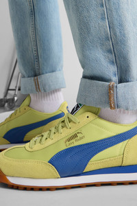 PRODUCT STORY The PUMA Easy Rider was born in the late ‘70s, when running made its move from the track to the streets. Today it's back with its classic slim profile and vintage vibes intact. This version, featuring a textile base and suede leather overlays, is sure to become your go-to for bringing a touch of easy, retro-style to everyday looks. FEATURES & BENEFITS - Leather Working Group (LWG): PUMA’s leather products support responsible manufacturing via the Leather Working Group. www.leatherworkinggroup.com DETAILS - Style: 399028_33 - Color: Sea Kelp-Vivid Blue - Nylon base - Suede leather quarter and medial overlays - Suede leather toe and heel overlays - Suede leather eyestay - Textile tongue with woven PUMA branding label - Textile collar lining - Textile sockliner with foil printed PUMA branding - Synthetic leather FOT with debossed and foil printed PUMA Cat Logo - Foil printed PUMA and Easy Rider branding details - Synthetic leather PUMA Formstrip