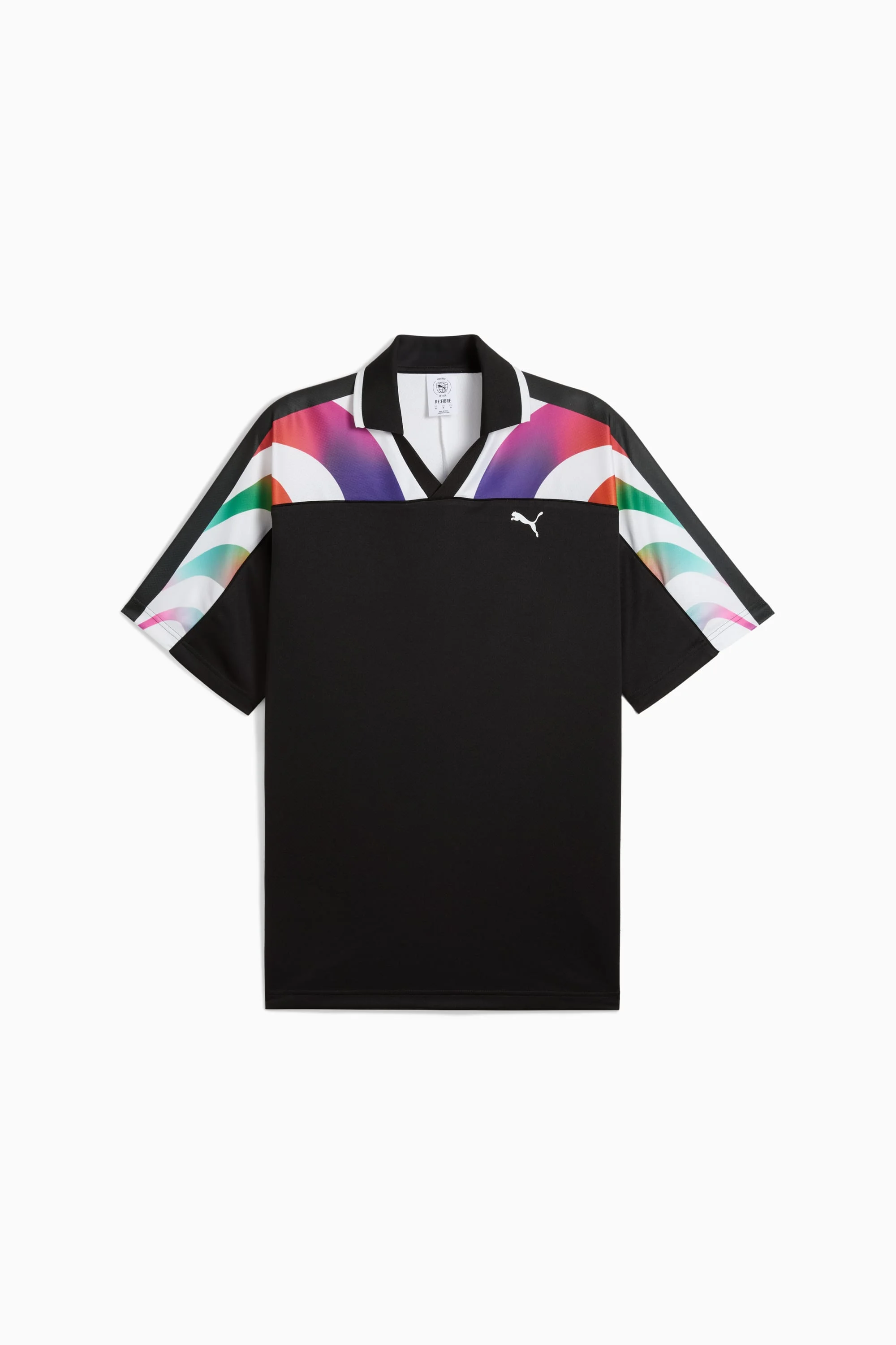 PRODUCT STORY Show your pride on and off the field with this PUMA jersey. Featuring a vibrant shoulder graphic inspired by PRIDE and a sporty rib V-collar, it's all about making empowering statements and unforgettable moments. DETAILS - Style: 629625_01 - Color: PUMA Black-AOP - Relaxed fit - Double face jacquard fabric - Regular length - Athletic look - Short sleeves - PUMA branding details MATERIAL INFORMATION - Shell: 100% polyester - Rib: 97% polyester, 3% elastane