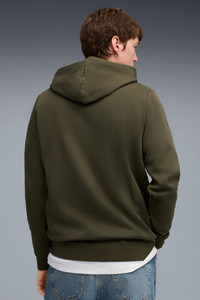 PRODUCT STORY Featuring PUMA's No. 1 Logo rubber print, adjustable hood, and ribbed cuffs and hem, this hoodie keeps you comfortable and cosy on casual days. FEATURES & BENEFITS - Made with at least 50% recycled materials DETAILS - Style: 684711_70 - Color: Dark Olive - Regular fit - Adjustable hood with drawcords - Ribbed cuffs and hem to keep warmth in - Kangaroo pockets - PUMA branding details MATERIAL INFORMATION - Hood Lining: 100% cotton - Shell: 66% cotton, 34% polyester - Rib: 97% cotton, 3% elastane