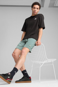 PRODUCT STORY Step into your day with these Essentials PUMA Shorts. Featuring an embroidered Cat logo badge and an elastic waistband with internal drawcord for a custom fit. Crafted with care, these shorts blend sporty vibes with everyday ease. Perfect for any activity. FEATURES & BENEFITS - Made with at least 20% recycled cotton DETAILS - Style: 684730_30 - Color: Green Moon - Regular fit - Open bottom - Elastic waistband with internal drawcord - Side pockets - PUMA branding details MATERIAL INFORMATION - UPPER POCKET BAG: 100% cotton - SHELL: 100% cotton