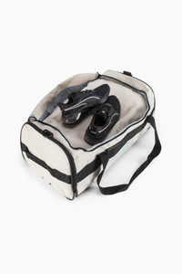 PRODUCT STORY Get out of here. This duffle bag is perfect for all your carrying needs. It's sturdy, simple, and has plenty of storage for everythig you may take with you. There's no better way to get where you're going. DETAILS - Style: 859228_06 - Color: WHITE / GREEN - Two handles at top - One handle at side - Comes with cross body strap - Mesh pocket at side - Zipper pocket on inside - Zipper pocket on outside side - PUMA Cat logo at side - PUMA wordmark on side - Dimensions: 11.75" x 25" x 12" - 100% polyester
