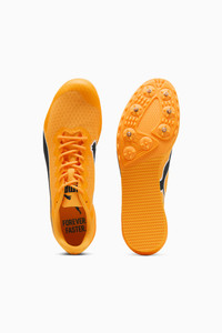 PRODUCT STORY Step up your game with PUMA's latest track spikes. Featuring a breathable mesh upper, extended PEBAX plate, and EVERTRACK heel for durability. Lightweight at 180g, these spikes come with a "FOREVER. FASTER" branded bag. Be ready to dominate. DETAILS - Style: 311379_03 - Color: Sun Stream-PUMA Black-PUMA White - Regular width - Synthetic upper - Lace closure - Shoe weight: 180g (Size UK 8) - Stack height: <20 mm - Comes with a "FOREVER. FASTER." branded nylon spike bag - Recommended for: neutral pronators - PUMA branding details MATERIAL INFORMATION - Midsole: 100% Synthetic - Sockliner: 100% Textile - Outsole: 100% Synthetic - Upper: 62% Synthetic, 38% Textile - Lining: 100% Textile