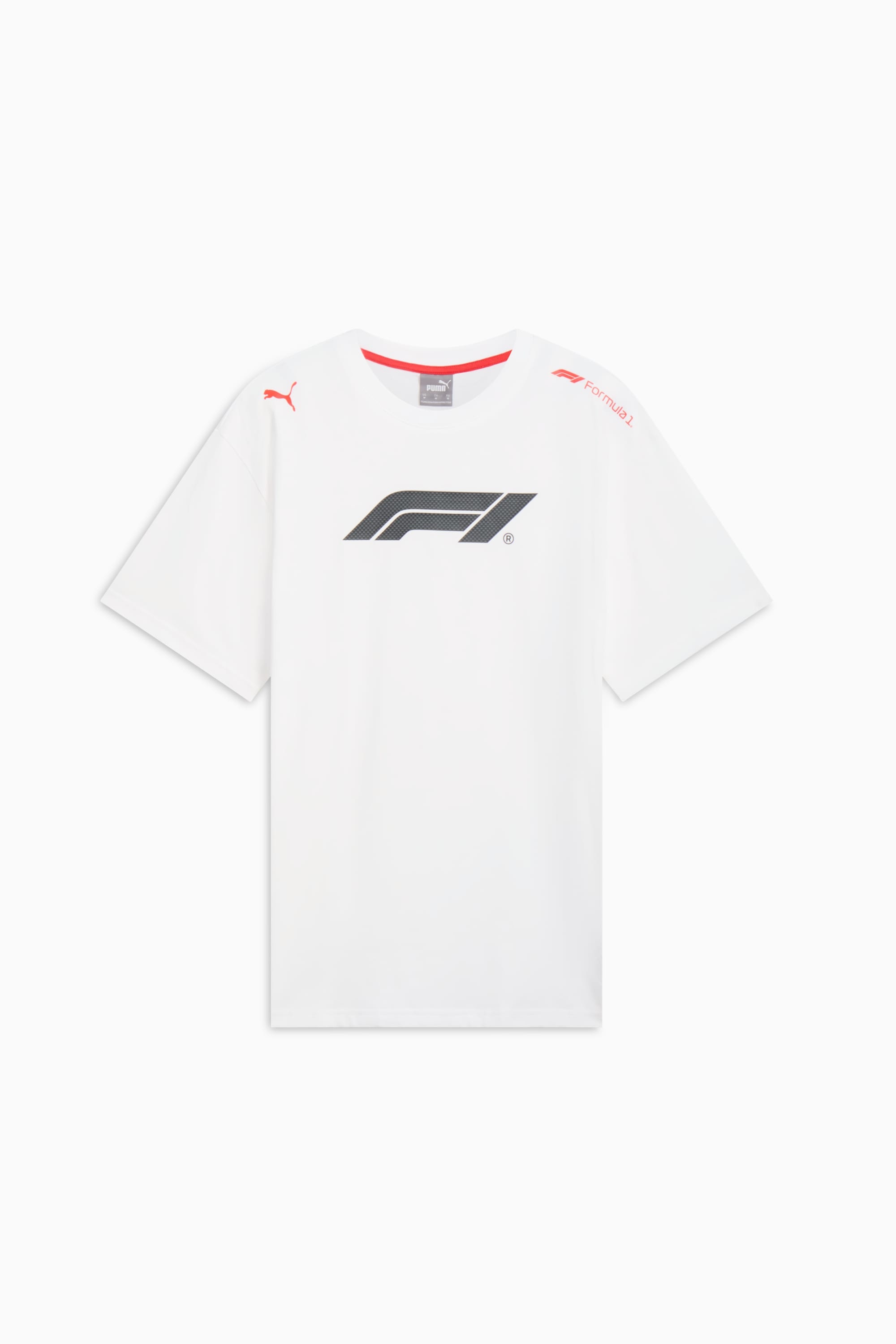 PRODUCT STORY Accelerate your wardrobe with this ESS+ relaxed-fit tee, showcasing F1® branding for stand-out motorsport style. Crafted from cotton, this tee is a comfortable choice for cheering on your favorite team. DETAILS - Style: 630264_02 - Color: PUMA White - 70% cotton, 30% recycled cotton - Short sleeves - Crew neck - Relaxed fit - Regular length - F1® branding details MATERIAL INFORMATION - SHELL: 100% cotton - COLLAR: 70% cotton, 30% polyester