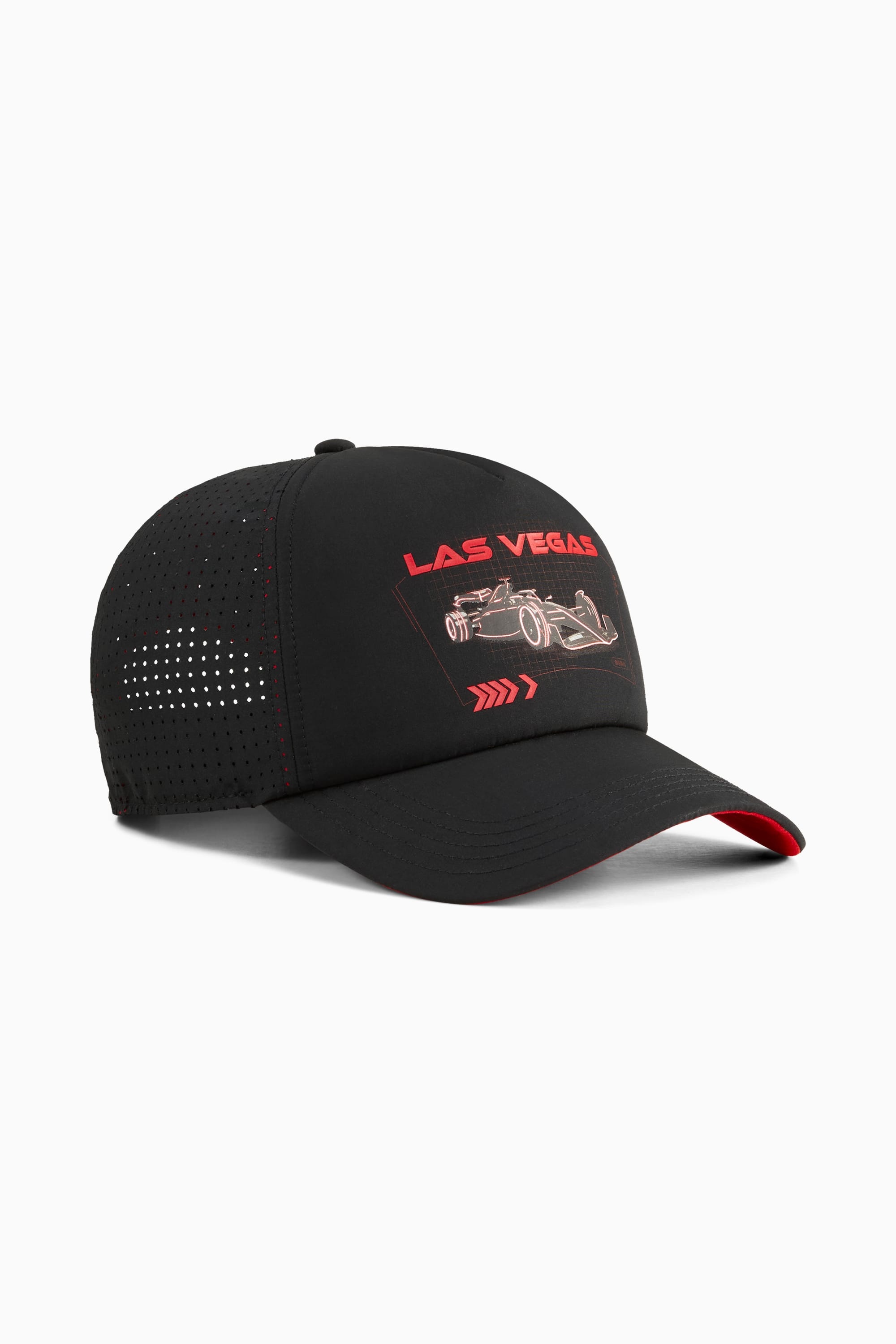 PRODUCT STORY Top off your race day-ready fit with this trucker hat, showcasing a classic silhouette and F1® Las Vegas branding to light up your look. FEATURES & BENEFITS - Made with at least 50% recycled materials. DETAILS - Style: 026326_01 - Color: PUMA Black - Snapback closure - Shell: 100% polyester - Lining: 100% woven polyester - PUMA branding details MATERIAL INFORMATION - SHELL: 100% polyester - FRONT LINING: 100% polyester