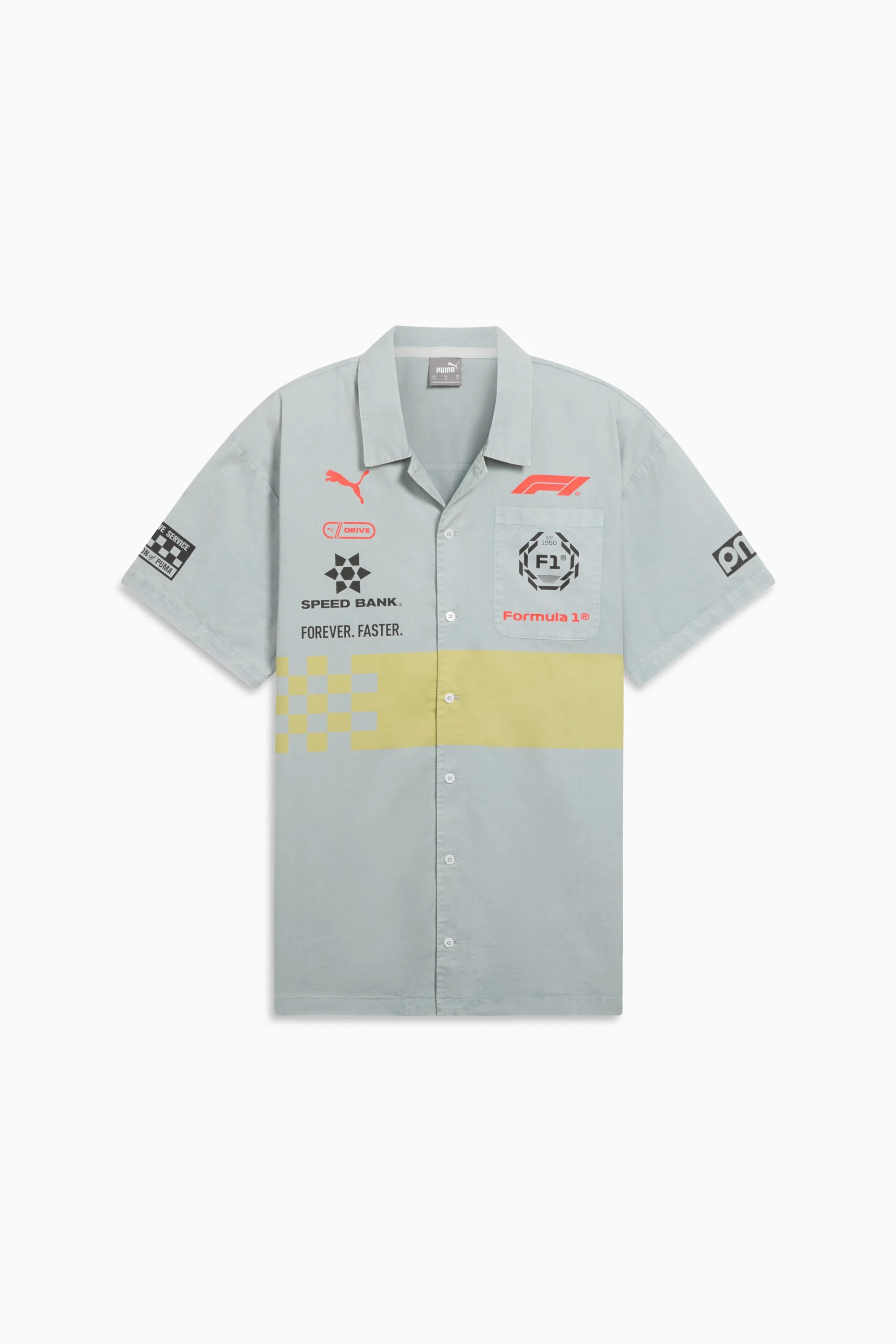 PRODUCT STORY Rev up your style with our F1® Racing Shirt. Featuring a streetwear silhouette, bold graphics, and iconic F1® and PUMA Cat logos, this shirt brings high-octane energy to your wardrobe. Perfect for those who live life in the fast lane. DETAILS - Style: 632246_01 - Color: Feather Gray - Regular fit - Short sleeves make this shirt comfortable and suitable for warmer weather - Streetwear silhouette provides a modern, casual look for everyday wear - PUMA Cat logo adds a touch of sportiness and brand identity - Loud graphics and F1 logo bring energy and a motorsports-inspired style MATERIAL INFORMATION - SHELL: 100% cotton