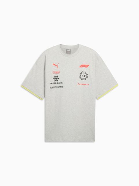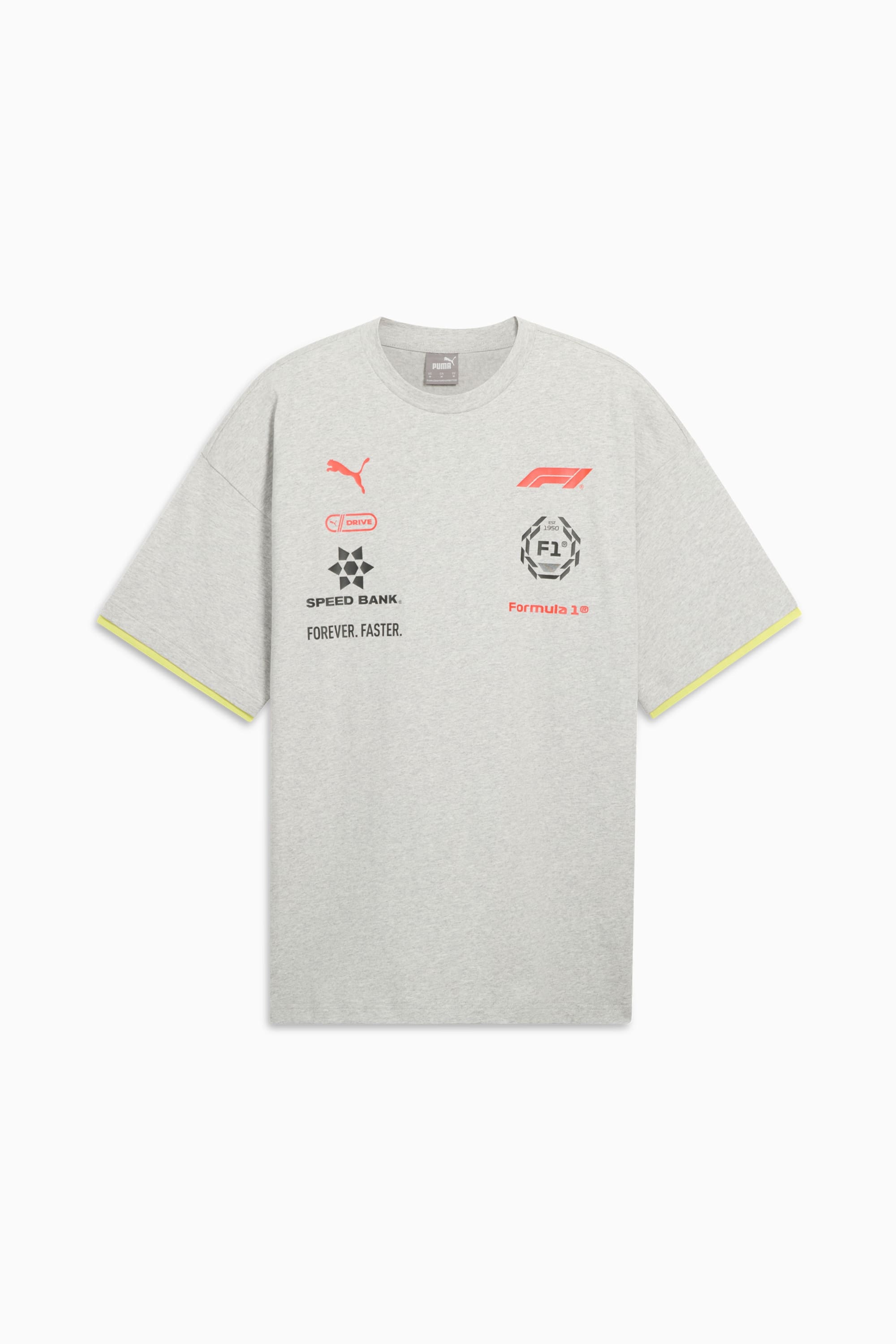 PRODUCT STORY Rev up your style with our F1® Racing Tee. Featuring a streetwear silhouette, bold graphics, and iconic F1® and PUMA Cat logos, this tee brings high-octane energy to your wardrobe. Perfect for those who live life in the fast lane. DETAILS - Style: 632245_01 - Color: Light Gray Heather - Relaxed streetwear silhouette for a comfortable, effortless look - Short sleeves make this tee perfect for warm weather wear - Crew neck - 210 gsm, single jersey - Loud, energetic graphics featuring the iconic F1® logo and PUMA cat MATERIAL INFORMATION - SHELL: 100% cotton - SLEEVE CUFF: 100% cotton