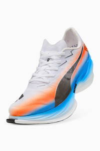 PRODUCT STORY A seismic shift in the world of road racing, the Fast-R NITRO™ Elite 3 will have you smashing your personal bests from the 5k to the Marathon. Upgraded NITROFOAM™ Elite provides maximal energy return, while a precisely engineered carbon-fiber PWRPLATE will provide you with a propulsive ride from start line to the finish. No racing shoe is complete without PUMAGRIP rubber that will allow you to perform your best in any raceday conditions. Unlock your new personal best in Fast-R NITRO™ Elite 3. This version celebrates Japan's famous race and show's off a unique colour concept to be sure you stand out on the road. FEATURES & BENEFITS - NITROFOAM™ ELITE: Innovative nitrogen-infused foam technology that offers exceptional energy return, speed, and greater long-distance comfort for race-day - PWRPLATE: Extended carbon fiber plate for powerful propulsion and elite efficiency - LIGHTWEIGHT: Ultra-light, 4-way stretch ULTRAWEAVE fabrics reduce fabric weight and friction, so you can focus on faster, stronger moves - PUMAGRIP: Outsole is made of durable rubber compound for multi-surface traction DETAILS - Style: 313418_01 - Color: PUMA White-Heat Fire-PUMA Black - Fit: Regular - Toe Type: Rounded - Fastener: Laces - Heel Type: Flat - Cushioning: Max - Heel-to-toe drop: 8 mm - Stack height: 40mm/32mm - Pronation: Neutral - Lifespan: 150km MATERIAL INFORMATION - Midsole: 100% Synthetic - Sockliner: 100% Textile - Outsole: 90% Rubber, 10% Synthetic - Upper: 80% Textile, 20% Synthetic - Lining: 100% Textile