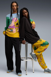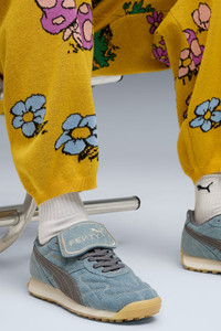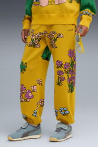PRODUCT STORY Welcome to the world of FENTY x PUMA x SMURFS. This new collection is inspired by the upcoming movie Smurfs featuring Rihanna as the iconic Smurfette, only in theaters July 18th. This collection for adults and kids alike includes knits showcasing the Smurf Village, an all-over print of the Smurfs on their Parisian adventure, multiple custom collaboration logos, and a new version of the Avanti sneakers. Here, it's all about the little things. FEATURES & BENEFITS - Made with at least 30% recycled materials. DETAILS - Style: 633455_01 - Color: Archive Gold - Fit: Oversized and relaxed - Main material type: Sweater - Full length - Rise: Medium - Waistband with drawcords - Knt floral pattern MATERIAL INFORMATION - Bottom Waistband: 48% cotton, 32% polyester, 17% nylon, 3% elastane - Shell: 60% cotton, 40% polyester - Bottom Hem: 51% cotton, 34% polyester, 12% nylon, 3% elastane - Pocket Bag: 60% cotton, 40% polyester