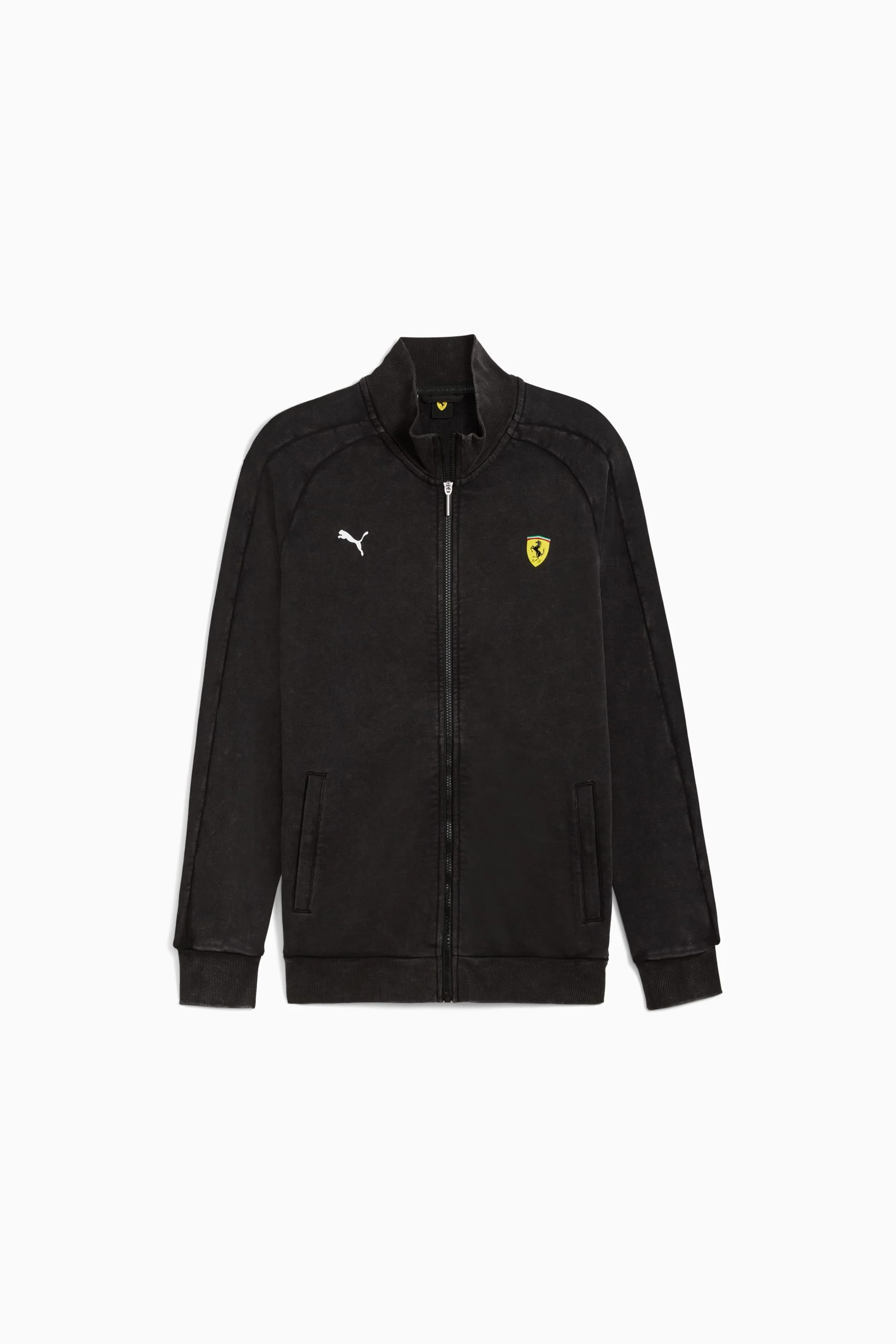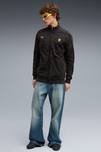 PRODUCT STORY The PUMA and Scuderia Ferrari collection pays homage to motorsport excellence and Ferrari's legendary racing heritage. This line of shoes, clothing, and accessories combines style, comfort, and performance with the iconic Scuderia Ferrari colors and details, so you can carry the Ferrari legacy with you wherever you go. FEATURES & BENEFITS - Made with at least 20% recycled cotton. DETAILS - Style: 632754_01 - Color: PUMA Black - Fit: Regular - Main material: French Terry - Neck: Collar - Long sleeves - Fastener: Full zip - Length: Standard jacket - Elasticated hems - Pockets: Zip Pocket - Signature PUMA T7 stripes on the sleeves - Scuderia Ferrari and PUMA branding details MATERIAL INFORMATION - Upper Pocket Bag: 100% cotton - Shell: 100% cotton - Sidepanel: 100% cotton - Rib: 97% cotton, 3% elastane