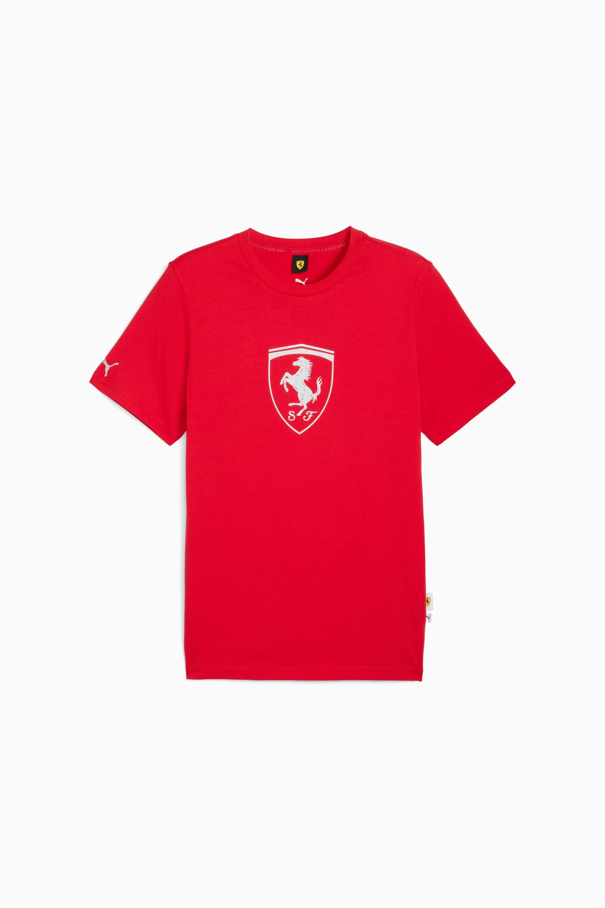 PRODUCT STORY The PUMA and Scuderia Ferrari collection pays homage to motorsport excellence and Ferrari's legendary racing heritage. This line of shoes, clothing, and accessories blends style, comfort, and performance with the iconic Scuderia Ferrari colors and details, allowing you to embrace the Ferrari legacy wherever you go. DETAILS - Style: 632785_02 - Color: Rosso Corsa - Fit: Regular - Main material: Single jersey - Neck: Crew neck - Short sleeves - Length: Regular - Graphic print details - Scuderia Ferrari and PUMA branding details MATERIAL INFORMATION - Shell: 100% cotton - Rib: 75% cotton, 25% polyester