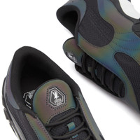 Puma link up with Skepta to present their long-awaited inaugural collaboration, headlined by the FS Forever Sneakers. The diligent Grime MC brings his multi-hyphenate talents to the table, shaping the design with blacked out mesh uppers overlayed with synthetic panels, and a hit of shiny chrome in the midsole. Keeping it clean, the iconic Puma Formstrip is subtly stitched across the side foot, whilst the duo’s co-branded eagle logo features at the tongue. Switch off the light to reveal a thermographic iridescent effect for a glow in the dark finish. - Mesh, Leather & Synthetic Uppers - Mesh Lining - 2 Additional Laces - Chrome TPU Piece - Co-Branded - Rubber Outsole