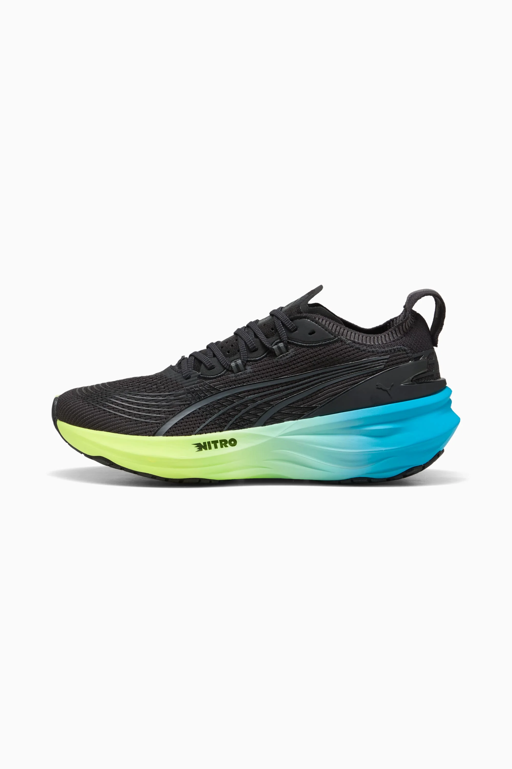 PRODUCT STORY Discover a new era of support, guidance, and comfort for all runners with the PUMA ForeverRun 2. This new and improved version provides unmatched stability thanks to a wider midsole, upgraded dual-density NITROFOAM™ cushioning, and an improved fit with a rolled collar and engineered knit upper. Made for your everyday running and training needs, ForeverRun 2 is a shoe that will make you feel like you can run forever. FEATURES & BENEFITS - NITROFOAM™: Advanced nitrogen-infused foam designed to provide superior responsiveness and cushioning in a lightweight package - PUMAGRIP: Durable performance rubber compound designed for all-surface traction - The upper of the shoes is made with at least 30% recycled materials. DETAILS - Style: 310109_15 - Color: PUMA Black-Fizzy Light-Speed Blue - Regular width - Textile upper - Lace closure - Heel-to-toe drop: 10 mm - Recommended for: overpronators - PUMA branding details MATERIAL INFORMATION - Midsole: 100% Synthetic - Sockliner: 100% Textile - Outsole: 100% Rubber - Upper: 79% Textile, 21% Synthetic - Lining: 100% Textile