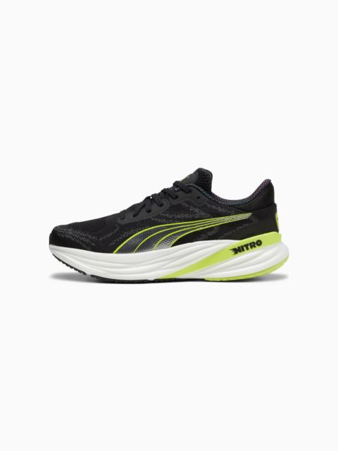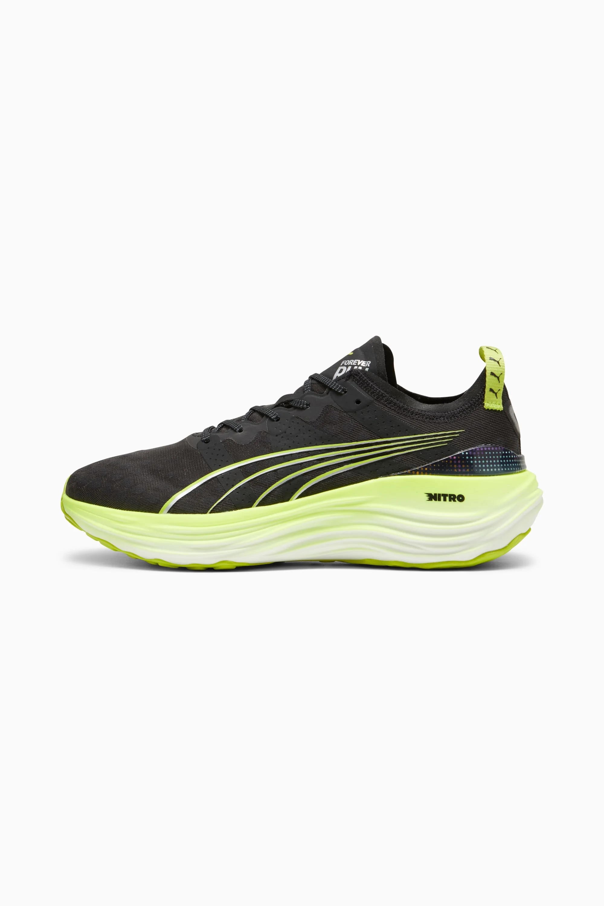 PRODUCT STORY Step into a new world of support and guidance with the ForeverRun NITRO™. Perfect for all runners and especially beginners, this shoe packs the tried-and-true RUNGUIDE system, designed to keep your feet running in the right position. We've combined a secure engineered mesh upper with an asymmetrical heel counter, to give you softness, comfort and stability. Lace up and start your running adventure with confidence. FEATURES & BENEFITS - NITRO™: Foam technology providing pinnacle responsiveness in an extremely lightweight package - PUMAGRIP: Durable rubber compound that provides multi-surface traction - ENGINEERED MESH UPPER: Premium material engineered for breathability - PWRTAPE: Targeted reinforcement for upper support & durability DETAILS - Style: 380073_01 - Color: PUMA Black-Lime Pow-Mineral Gray - Asymmetrical heel counter for stability and early pronation - Flared rubber outsole for wider support base - Lace closure - Recommended for: overpronators - Low boot - PUMA branding details MATERIAL INFORMATION - Midsole: 100% Synthetic - Sockliner: 100% Textile - Outsole: 100% Rubber - Upper: 63% Textile, 37% Synthetic - Lining: 100% Textile