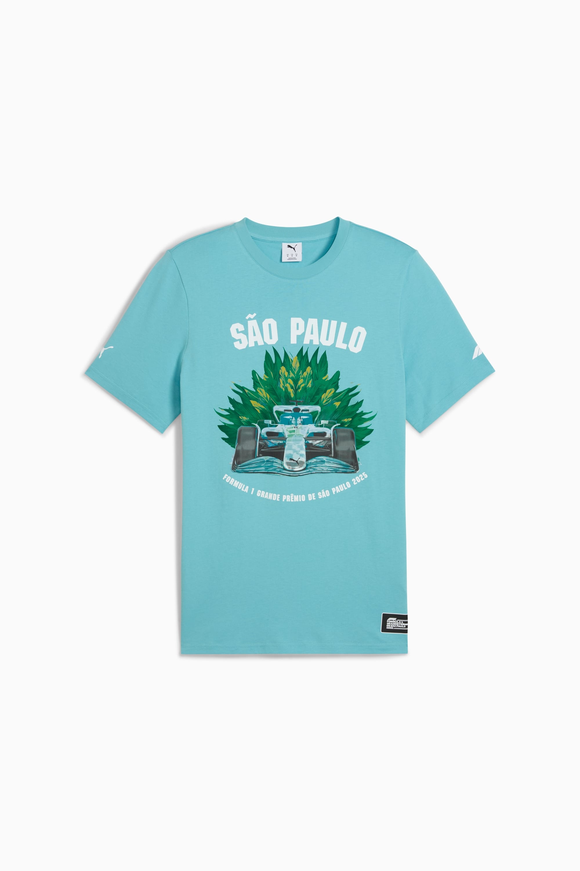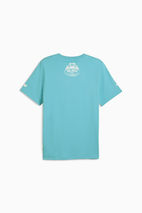 PRODUCT STORY Bring racetrack energy to your wardrobe. Featuring bold graphics and a regular fit, this tee embodies the passion of Formula 1. Perfect for race-day vibes or casual hangouts, it's your go-to for showcasing motorsport pride. Finished with the iconic PUMA Cat logo. Adrenaline meets style – PUMA delivers. DETAILS - Style: 630236_01 - Color: Aqua - Fit: Regular - Main Material: Single jersey - Neck: crew - Short sleeves MATERIAL INFORMATION - Shell: 100% cotton - Rib: 71% cotton, 29% polyester