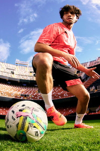 PRODUCT STORY Playmakers, lock into the FUTURE. The re-engineered upper combines PWRPRINT, PWRTAPE, extra stretchy knit, and soft dual mesh for a next-generation adaptive fit, so you can create without constraints throughout the 90 minutes. Dynamic Motion System provides traction and agility for quick cuts and changes of pace. When you wear the FUTURE, you are the FUTURE. Go create. FEATURES & BENEFITS - Recycled content: The upper of this shoe is made from at least 20% recycled material - FUZIONFIT360: Upper that combines technical double mesh, extra stretch knit, PWRPRINT and two layers of PWRTAPE, for perfect fit and support in addition to absolute freedom of movement DETAILS - Style: 107599_03 - Color: Sunset Glow-PUMA Black-Sun Stream - 3D textures on the main areas of contact with the ball, for optimal touch and control - The micro-perforated heel padding keeps the foot comfortable in the shoe - Lightweight, removable insole with NanoGrip technology prevents the foot from slipping inside the shoe - Dynamic Motion System with an advanced stud configuration is designed for the perfect balance of support, traction, and agility. A mix of high-performance materials provides additional energy return at lighter weight. - Suitable for use on both firm natural surfaces and artificial grass (4G). - FG/AG: Firm Ground/Artificial ground outsole - Can be used with or without laces - Mid-cut boot MATERIAL INFORMATION - Sockliner: 100% Textile - Outsole: 100% Synthetic - Upper: 79.13% Synthetic, 20.87% Textile - Lining: 100% Synthetic