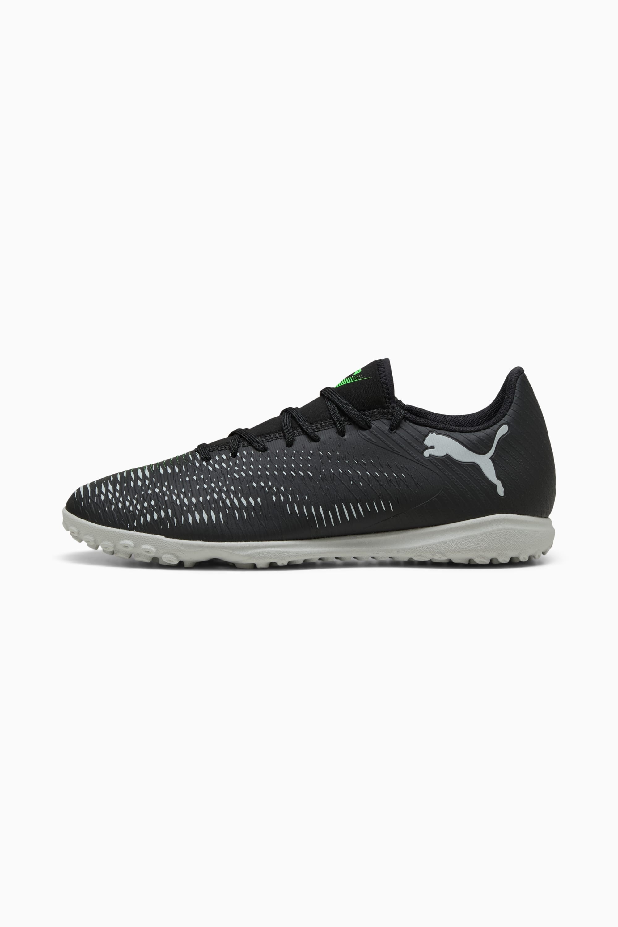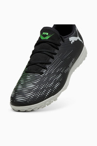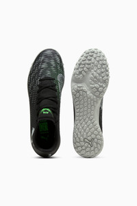 PRODUCT STORY Playmakers, unleash your creativity with the FUTURE 8 PLAY. It features a lightweight synthetic upper, LYCRA® slip-on tongue, and emboss lines for enhanced ball control. The low-profile multi-studded outsole ensures agility on hard natural surfaces and artificial grass. FEATURES & BENEFITS - The upper of the shoes is made with at least 20% recycled materials - FIT: Lightweight synthetic upper with a LYCRA® slip-on tongue for comfort, support, and durability - SKILL: Emboss lines on the forefoot for enhanced ball control DETAILS - Style: 108378_02 - Color: PUMA Black-Cool Light Gray-Fluo Green - Regular to wide fit provides a comfortable and secure feel - Low-profile multi-studded rubber outsole suitable for use on hard natural surfaces and artificial grass (2G) - Features a lightweight synthetic upper with LYCRA® slip-on tongue for comfort, support, and durability - Regular to wide fit - TT: Suitable for use on hard natural surfaces and artificial grass (2G) MATERIAL INFORMATION - Sockliner: 100% Textile - Outsole: 100% Rubber - Upper: 100% Synthetic - Lining: 100% Textile