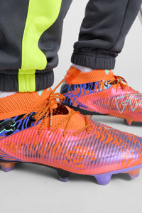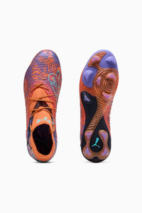 PRODUCT STORY Playing like everyone else? No thanks. In a world where creativity is getting coached out of sport, create your own world with FUTURE 8 Creativity Edition by Neymar Jr. Packed with extraterrestrial graphics and future-proof tech, like the FUZIONFIT³ upper that moves with you like a second skin, this soccer cleat is here to remind you: rules are optional, instincts are everything. Playmakers, the FUTURE is Yours to Create. FEATURES & BENEFITS - The upper of the shoes is made with at least 20% recycled materials - PWRTAPE: Targeted upper reinforcement for support and durability - FLEXGILITY: with its dual-density composition, circular stud layout and stud shape optimized for use on artificial grass, the outsole is designed for quick pivots and agile 360-degree movement needed to outmaneuver the opposition - ORTHOLITE® memory foam padding in the heel provides enhanced comfort DETAILS - Style: 108428_01 - Color: Orange Poppy-Dark Amethyst-Electric Peppermint-PUMA Black - Textured high-density mesh layer with GripControl Pro finish for enhanced ball grip and control - Highly elastic LYCRA® upper base layer acts as a second skin, adapting dynamically to foot's shape - Fuzionpods on the upper protect the foot without restricting freedom of movement - FG: Suitable for use on firm ground - PUMA branding details MATERIAL INFORMATION - Sockliner: 100% Textile - Outsole: 100% Synthetic - Upper: 82.67% Synthetic, 17.33% Textile - Lining: 62.59% Textile, 37.41% Synthetic
