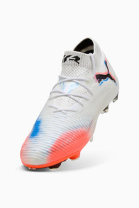 PRODUCT STORY Playmakers, unleash your creativity with FUTURE. The FUZIONFIT³ upper wraps your foot like a second skin, providing a snug, cushioned fit without restricting movement. When it's time to show off your ball-handling skills, the high-density textured mesh layer with a GripControl Pro finish delivers excellent grip and control. The all-new FLEXGILITY outsole offers 360-degree agility, letting you move between the lines and create without limits. FEATURES & BENEFITS - FIT: FUZIONFIT³?upper uses elastic four-way stretch yarn, 3D Fuzionpods, and PWRTAPE for an adaptive fit that moves with you like a second skin, so you can create without constraints - SKILL: Textured high-density mesh layer with a GripControl Pro finish for all the ball grip and control you need to create chances or finish them off with ease - MOVEMENT: With its circular stud layout and dual-density composition, the FLEXGILITY outsole is designed for agile 360-degree movement that keeps the opposition guessing - The upper of the shoes is made with at least 20% recycled materials. DETAILS - Style: 108581_01 - Color: PUMA White-PUMA Black-Glowing Red - Width: Regular - Fastener: Laces - Heel type: Flat - Lining: Textile - Lightweight removable sockliner with NanoGrip technology - Surface: Firm Ground
