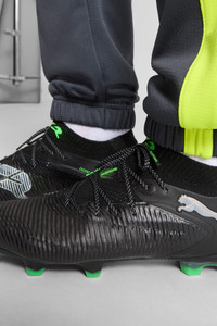 PRODUCT STORY Playmakers, unleash your creativity on firm soccer ground with the FUTURE 8 ULTIMATE. These game-changing cleats feature a high-density mesh for ball control, FLEXGILITY outsole for agile movement, and the option to play with or without laces, so you can move between the lines and create beyond limits. PUMA's ultimate fit and performance await. FEATURES & BENEFITS - Made with at least 20% recycled materials in the upper - PWRTAPE: Targeted upper reinforcement for support and durability - FUZIONFIT: wraps the foot like a second skin, offering a snug, cushioned fit without limiting movement DETAILS - Style: 108138_02 - Color: PUMA Black-Cool Light Gray-Fluo Green - Textured high-density mesh with GripControl Pro finish - PWRTAPE across the midfoot provides ultimate lockdown and stability for enhanced control - Regular to wide fit - FLEXGILITY outsole is designed for quick pivots and agile 360-degree movement needed to outmaneuver the opposition - FG: Suitable for use on firm natural surfaces MATERIAL INFORMATION - Sockliner: 100% Textile - Outsole: 100% Synthetic - Upper: 82.67% Synthetic, 17.33% Textile - Lining: 62.59% Textile, 37.41% Synthetic