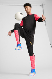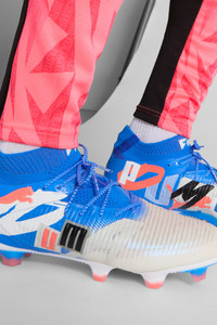 PRODUCT STORY Unleash your creativity with PUMA's latest soccer cleats. Featuring a high-density mesh for ball control, FLEXGILITY outsole for agile movement, and PWRTAPE for ultimate stability. Play with or without laces and conquer the field with unmatched freedom and precision. FEATURES & BENEFITS - The upper of the shoes is made with at least 20% recycled materials - PWRTAPE: Targeted upper reinforcement for support and durability DETAILS - Style: 108420_01 - Color: PUMA White-Ultra Blue-Feather Gray-PUMA Black-Glowing Red - Textured high-density mesh layer with GripControl Pro for enhanced ball grip and control. - PWRTAPE across the midfoot for ultimate lockdown and stability, improving stretchiness and adaptability. - Fuzionpods on the upper protect the foot without restricting freedom of movement. - Highly elastic LYCRA® upper base layer with extra stretchy knit adapts dynamically to foot's shape. - PUMA branding details MATERIAL INFORMATION - Sockliner: 100% Textile - Outsole: 100% Synthetic - Upper: 82.67% Synthetic, 17.33% Textile - Lining: 62.59% Textile, 37.41% Synthetic