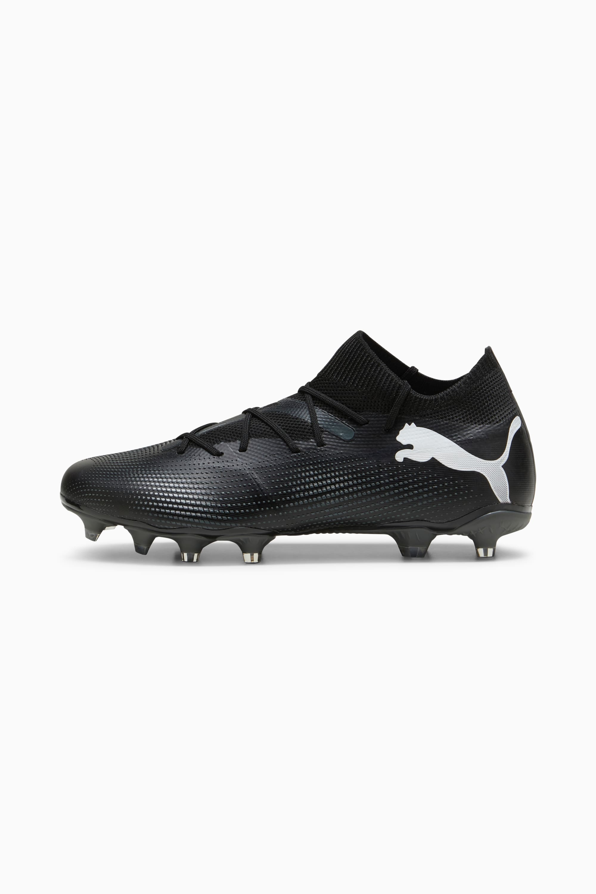PRODUCT STORY Playmakers, lock into the FUTURE. The re-engineered upper combines a supportive TAPE, stretchy knit, and lightweight mesh for a next-generation adaptive fit, so you can create without constraints throughout the 90 minutes. Dynamic Motion System provides traction and agility for quick cuts and changes of pace. When you wear the FUTURE, you are the FUTURE. Go create. FEATURES & BENEFITS - Recycled content: The upper of this shoe is made from at least 20% recycled material - FUZIONFIT: upper that combines lightweight mesh, stretch knit and supportive PWRTAPE, for a comfortable fit, support and maximum freedom of movement DETAILS - Style: 107715_02 - Color: PUMA Black-PUMA White - FUZIONFIT mesh and knit upper - Embossed details on the areas of contact with the ball, to improve touch and control - The Dynamic Motion System and its advanced stud configuration provides the perfect balance of support, grip and agility, resulting in excellent energy return, in a very lightweight package - Heel padding keeps the foot comfortable in the shoe - Suitable for use on both firm natural surfaces and artificial grass (4G) - Regular to wide fit - FG/AG: Firm Ground/Artificial Ground - Mid-cut boot MATERIAL INFORMATION - Sockliner: 100% Textile - Outsole: 100% Synthetic - Upper: 76.55% Synthetic, 23.45% Textile - Lining: 74.84% Textile, 25.16% Synthetic