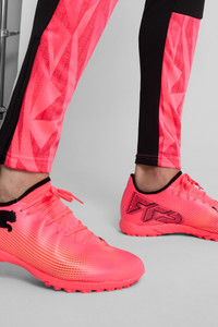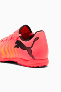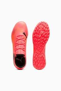PRODUCT STORY Playmakers, lock into the FUTURE. The soft upper combines a lightweight yet durable synthetic and a stretchy collar for a supportive fit, so you can create without constraints throughout the 90 minutes. When you wear the FUTURE, you are the FUTURE. Go create. FEATURES & BENEFITS - Recycled content: The upper of this shoe is made from at least 30% recycled material DETAILS - Style: 107726_03 - Color: Sunset Glow-PUMA Black-Sun Stream - The soft upper combines a lightweight yet durable synthetic and a stretchy collar for a comfortable and supportive fit - Texturized print details at key contact zones for enhanced ball grip - Low-profile multi-studded rubber outsole - Suitable for use on hard natural surfaces and artificial grass (2G) - Regular to wide fit - TT: Turf Training outsole