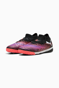 PRODUCT STORY A cleat that fits different, made for players who make a difference. Playmakers, unleash your creativity with the FUTURE 8 PRO. They feature a flexible LYCRA® upper, PWRTAPE for stability, and GripControl for superior ball handling. Play with or without laces and stay cool with Ortholite® O-Therm™ technology. FEATURES & BENEFITS - Upper made with at least 30% recycled materials - FIT #1: Highly elastic LYCRA® upper base material combined with a stretchy knitted collar for a flexible, secure, and supportive fit - FIT #2: PWRTAPE across the midfoot for the ultimate lockdown and stability - SKILL: Combination of raised mesh lines and GripControl technology for improved ball grip and control DETAILS - Style: 108366_01 - Color: PUMA Black-PUMA White-Glowing Red - Raised mesh lines and GripControl technology improve ball grip and control - PWRTAPE across the midfoot offers ultimate lockdown and stability - Highly elastic LYCRA® upper and stretchy knitted collar provide a flexible, secure fit - Low-profile multi-studded rubber outsole and ProFoam LITE midsole suitable for use on hard natural surfaces and artificial grass (2G) - Ortholite® O-Therm™ aerogel-infused insole blocks out the heat, keeping the foot cool and comfortable - Play with or without laces - Lightweight removable sockliner with NanoGrip technology - Regular to wide fit MATERIAL INFORMATION - Midsole: 100% Synthetic - Sockliner: 100% Textile - Outsole: 100% Rubber - Upper: 81.50% Synthetic, 18.50% Textile - Lining: 62.59% Textile, 37.41% Synthetic
