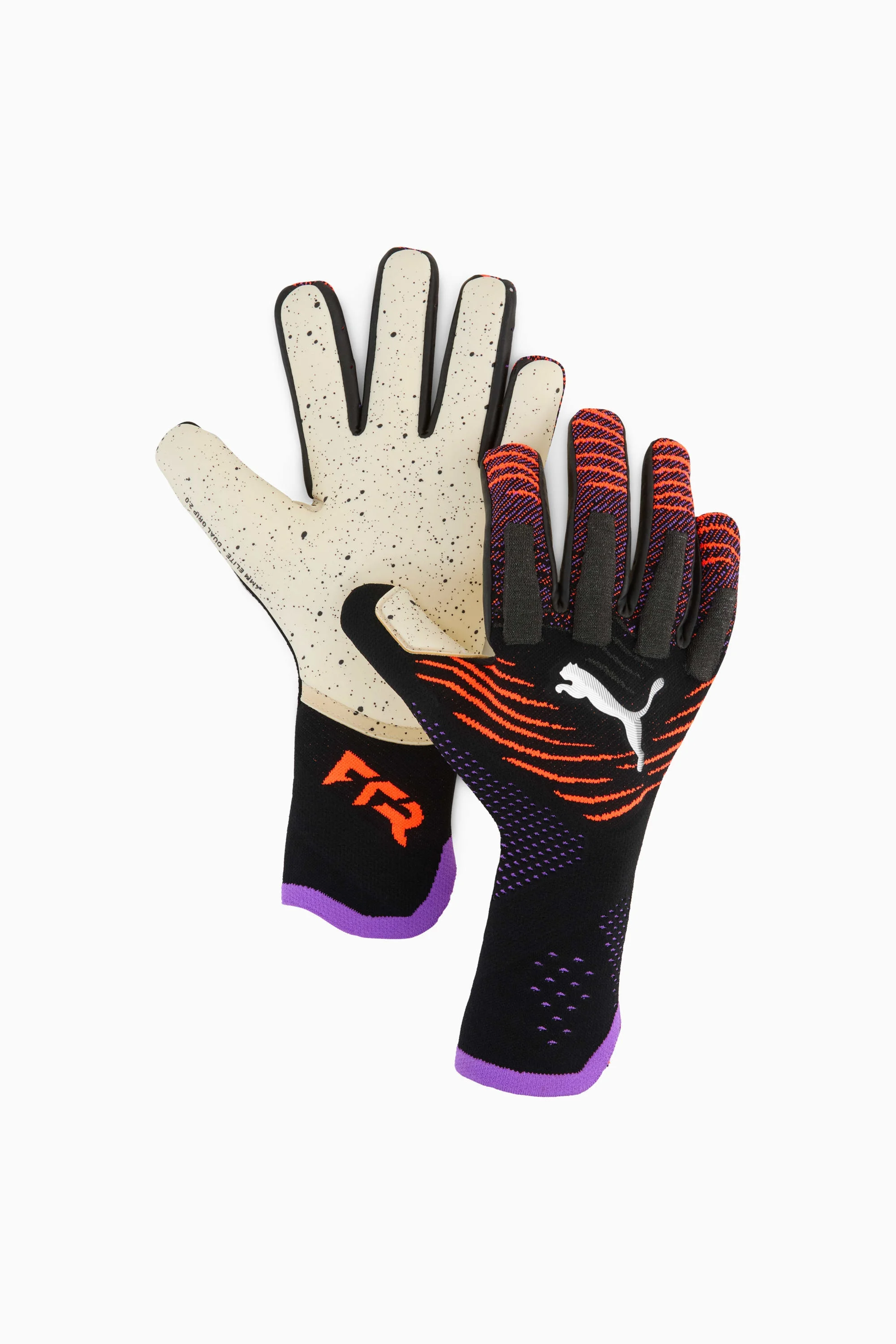PRODUCT STORY Unleash your inner soccer goalkeeper with PUMA's latest gloves. Featuring 4mm ELITE+ DUAL GRIP 2.0 palm latex, a knitted backhand, and latex finger gussets, these gloves offer unparalleled grip, fit, and control. Get ready to own the goal. DETAILS - Style: 042064_01 - Color: PUMA Black-Glowing Red-Purple Glimmer - Latex finger gussets and wrist support construction for freedom of movement - Dual Grip 2.0 palm latex provides excellent grip in all conditions for superior ball control - Negative cut design and knitted backhand offer a tight, customised fit and high reactivity - Thumb wrap and grip yarns enhance ball contact and control for goalkeepers - PUMA Cat logo MATERIAL INFORMATION - PALM: 100% latex - BACKHAND: 82% polyester, 9% Silicon, 9% elastane