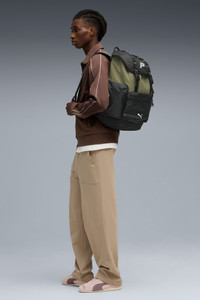 PRODUCT STORY This is the FUTURE.PUMA.ARCHIVE. This street-inspired collection merges the essence of our past with the limitless possibilities of our future. Retro yet forward-thinking, these styles are here to make a statement. FEATURES & BENEFITS - Made with at least 50% recycled materials. DETAILS - Style: 091828_03 - Color: Loden Green - Main compartment with bungee cord closure and hooded construction with adjustable buckles - Front zip pocket - Side slip-in pockets - Internal padded laptop sleeve - Technical device compartment size: Up to 14'' - Volume: 28L - Dimensions: H46cm x W26cm x D17cm - Padded back panel for comfort - Daisy chains on the front to attach items to MATERIAL INFORMATION - Mesh: 100% polyester