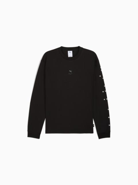 PRODUCT STORY The House of Graphics collection draws inspiration from music, art, and design to create something fresh. T-shirts and hoodies feature striking graphics that blend mediums, materials, and messages. This season, we're inspired by everything... and nothing. FEATURES & BENEFITS - Made with at least 20% recycled cotton. DETAILS - Style: 632371_02 - Color: PUMA White - Fit: Relaxed - Main material: Single jersey, 230gsm - Neck: Crew neck - Long sleeves - Ribbed cuffs - Length: Regular - Graphic print details MATERIAL INFORMATION - Shell: 100% cotton - Rib: 70% cotton, 30% polyester