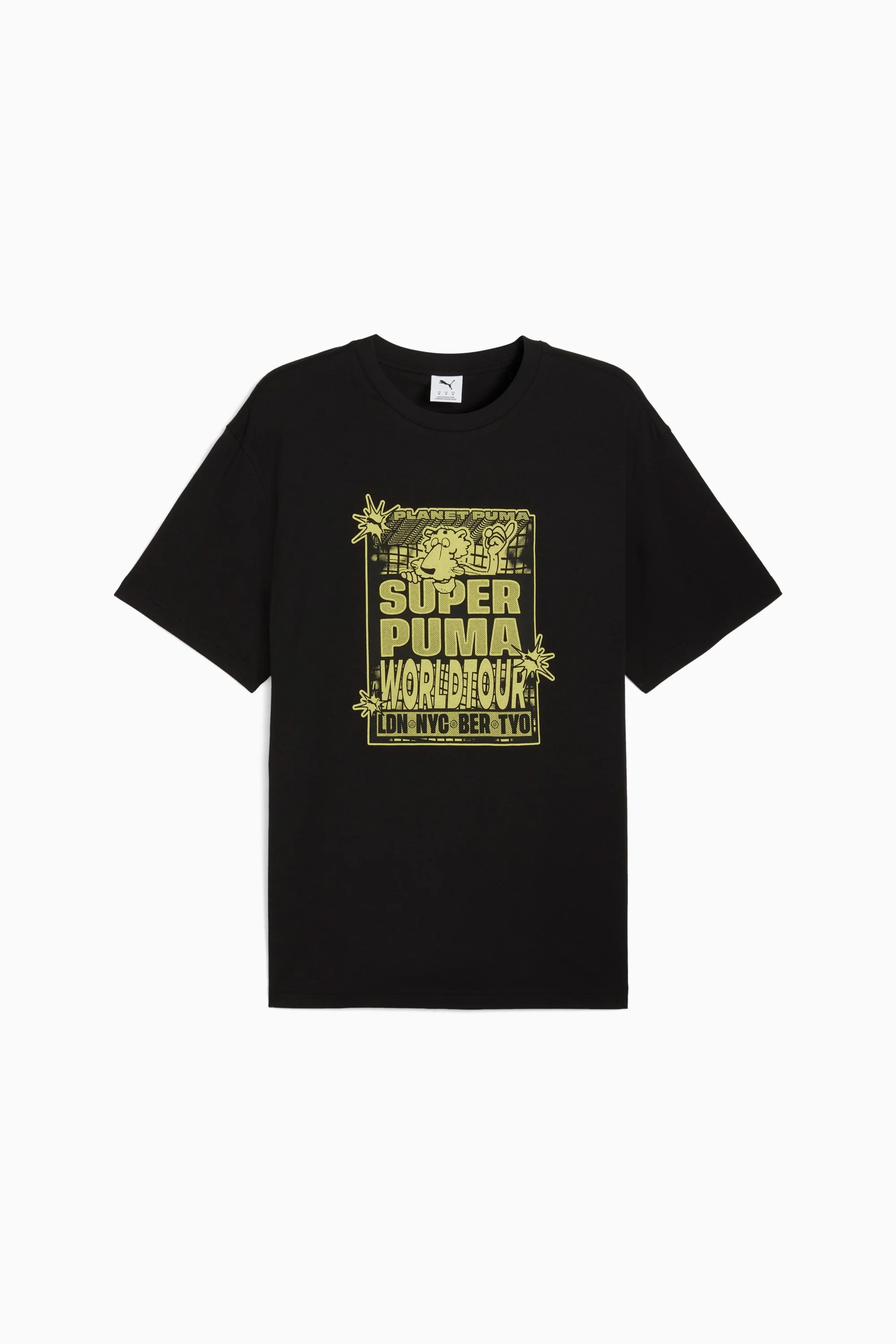 PRODUCT STORY PUMA's collection of Graphic tees combines creative designs with simple style, offering comfortable pieces that stand out. From abstract patterns to iconic logos, each design adds a unique touch. Wherever your day takes you, these graphics enhance your look with effortless cool. FEATURES & BENEFITS - Made with at least 20% recycled cotton. DETAILS - Style: 632112_01 - Color: PUMA Black - Fit: Relaxed - Main material: Single jersey - Neck: Crew neck - Short sleeves - Length: Regular