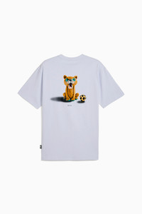 PRODUCT STORY Step into the House of Graphics with this tee. Featuring unique sports-inspired graphics, a bold PUMA Cat logo, and a striking print on both sides, it's your go-to for effortless streetwear vibes. FEATURES & BENEFITS - Made with at least 20% recycled cotton DETAILS - Style: 629411_47 - Color: Cool Weather - Relaxed fit - Single jersey fabric - Regular length - Crew neck - Short sleeves - PUMA branding details MATERIAL INFORMATION - Shell: 100% cotton - Rib: 70% cotton, 30% polyester