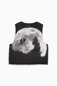 PRODUCT STORY We’ve teamed up with the beloved ’80s classic E.T. the Extra-Terrestrial for a cosmic collab that brings big-screen nostalgia into everyday style. Think starry graphics, retro color palettes, and iconic silhouettes like E.T. and Elliott on their unforgettable ride. Each piece is designed to bring back the bold, playful energy of the era - timeless details that make your look feel out of this world. FEATURES & BENEFITS - Made with at least 20% recycled materials DETAILS - Style: 633106_01 - Color: PUMA Black-AOP - Fit: Regular - V-neck - Fastener: Button placket - Sleevless - Length: Regular - Pockets - Graphic print details MATERIAL INFORMATION - Lining: 100% cotton - Shell: 100% cotton - Filling: 100% polyester - Pocket Bag: 100% cotton
