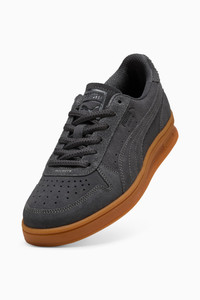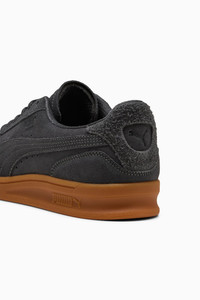 PRODUCT STORY Originating from our mid-'80s archive, the PUMA Indoor was designed as a universal indoor training shoe. With its solid, curved midsole and durable leather upper, the shoe was as appealing to athletes back then as it is to casual wearers today. DETAILS - Style: 403248_01 - Color: Dusky Gray-Gum - Width: Regular - Toe Type: Rounded - Fastener: Laces - Main material of upper: Leather - Heel type: Flat - Lining: Textile - Outsole: Rubber MATERIAL INFORMATION - Sockliner: 100% Textile - Outsole: 100% Rubber - Upper: 99.37% Leather - cow, 0.63% Textile - Lining: 100% Textile