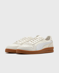 A Terrace legend from the Puma archives returns: the Indoor OG. Originally created for indoor soccer, the style has been brought back to life with premium materials throughout the upper, including leather and nubuck, while the perforations on the toe and sidewall add extra breathability and the Puma Formstrip on the side, along with the rubber outsole, provide the classic, retro look. - Premium leather upper - Nubuk overlays - Leather lining - Rubber midsole - Rubber sole Article Number: 395363-05 Gender: Men, Women Color: FROSTED IVORY-PUMA WHITE Material: 30% Rubber, 70% Leather