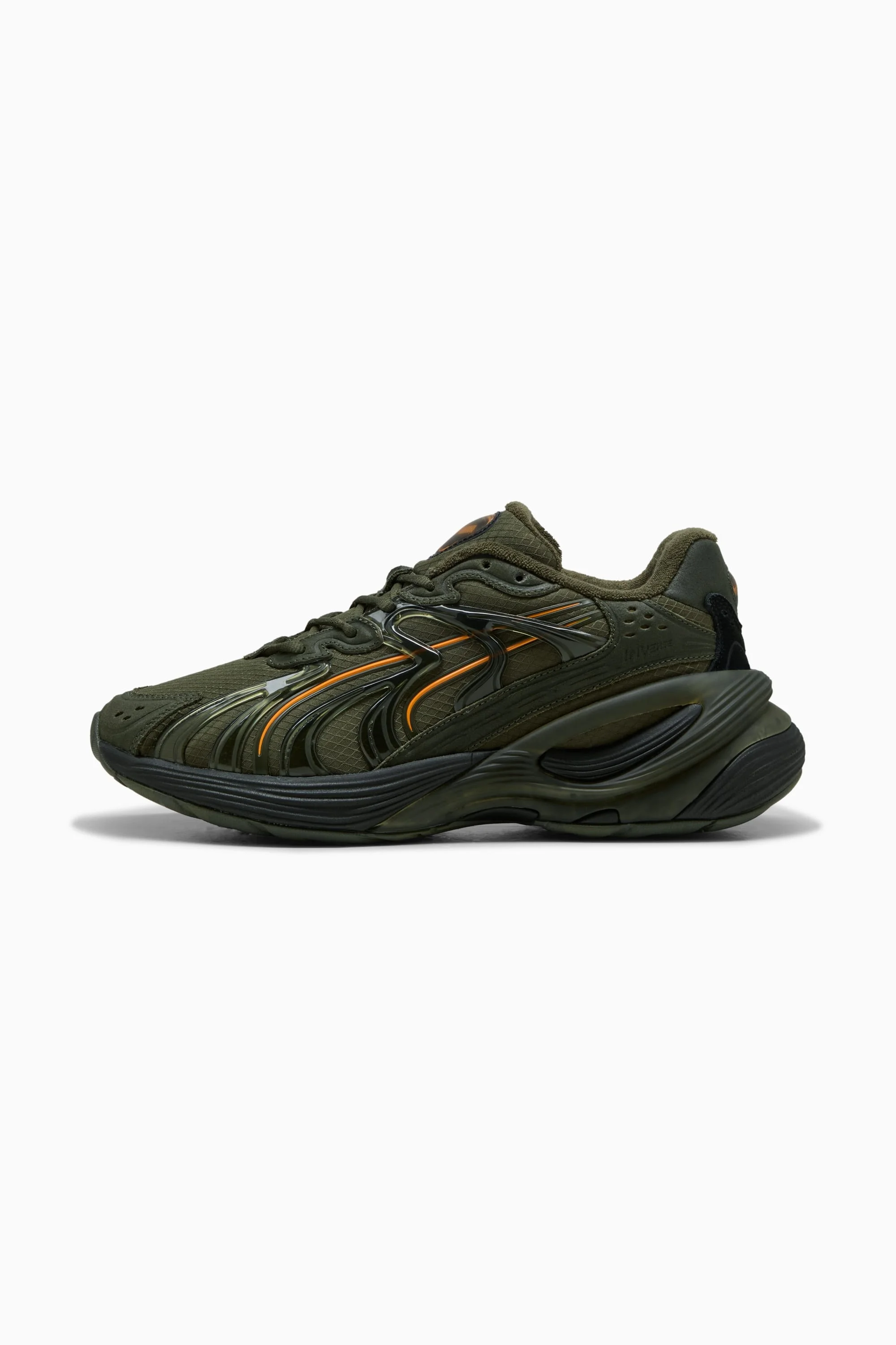 PRODUCT STORY Say hello to the Inverse, our most progressive silhouette yet. Inverse pushes the boundaries of art and science. To create Inverse, PUMA’s designers looked to AI technology to remix and reshape a new silhouette inspired by our Inhale sneakers. The result is a never-before-seen design that challenges the norm. Expressive lines, mixed mediums, and asymmetrical shapes combine in this new venture into the future. FEATURES & BENEFITS - ProFoam Lite: Lightweight EVA designed to cushion your landing and propel your next step DETAILS - Style: 402343_01 - Color: Green Moss-Dark Olive-Pumpkin Pie - Regular width - Textile upper - Leather overlays with debossed patterns on toe, eyestay and heel - Lace closure - Mesh tongue - Mesh lining - Comfortable EVA midsole - Rubber outsole - PUMA branding details MATERIAL INFORMATION - Upper: 45.18% Leather - cow, 38.27% Textile, 16.55% Synthetic
