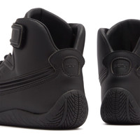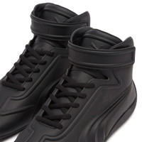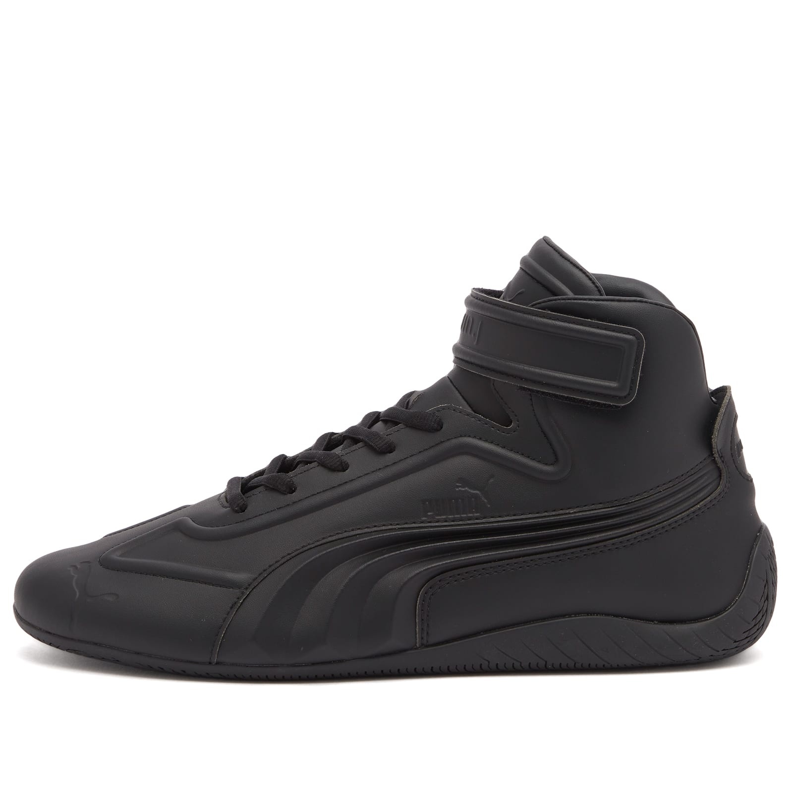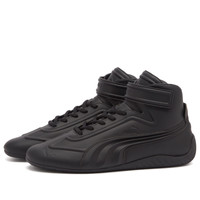PUMA teams up with South Korean designer brand JUUN J, reimaging the PUMA Speedcat sneaker with an elevated and luxury touch. Bringing unparalleled performance and precision for over 25 years, the Speedcat originated as a Formula 1 footwear style and has evolved over the years to become a global fashion icon. In this collaboration, the sneaker gets an upgrade in this mid-top version, dressed up in a sleek black synthetic leather upper with a textured, dimensional panel along the side, taking the signature PUMA features to the next level. The PUMA logo sits on the sidewall, toe and tongue, while JUUN J adds its touch on the front velcro straps and heel counter to complete the look. - Rubber & Vegan Leather Uppers - Rubber Sole - Lace-Up - Mid-Top - Textured Side Panel - Debossed & Embossed Branding