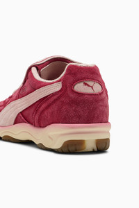 PRODUCT STORY The NeverWorn collection revives pieces from the PUMA archive and reinvents them for a new generation. This season we're re-interpreting the KING Indoor silhouette from our archives, fusing iconic football heritage with contemporary street style. This NeverWorn version of the classic features a faded suede upper for a worn-in look and removable folded tongue for two looks in one. DETAILS - Style: 402250_01 - Color: Dark Crimson-Rose Quartz - Regular width - Faded suede upper for a worn-in look - Lace close - Folded removable tongue - Textile jersey lining - Canvas sockliner - Midsole with color bleed effect - PUMA branding details MATERIAL INFORMATION - Midsole: 100% Synthetic - Sockliner: 100% Textile - Outsole: 100% Rubber - Upper: 100% Leather - cow - Lining: 100% Textile