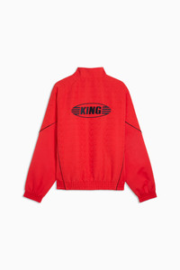 PRODUCT STORY Since its debut so many years ago, the PUMA KING has remained a piece of football terrace culture iconography. Deeply rooted in the PUMA DNA, this collection, built around the KING franchise, takes the iconic KING logo and applies it to archive-inspired pieces including this jacket. FEATURES & BENEFITS - WATER-REPELLENT - Made with at least 90% recycled materials. DETAILS - Style: 635023_11 - Color: For All Time Red - Fit: Relaxed - Main material type: Jacquard weave - Collar - Full zip - Long sleeves MATERIAL INFORMATION - Inserts: 100% polyester - Lining: 100% polyester - Shell: 100% polyester - Filling: 100% polyester