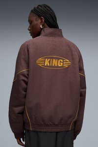 PRODUCT STORY Since its debut so many years ago, the PUMA KING has remained a piece of football terrace culture iconography. Deeply rooted in the PUMA DNA, this collection, built around the KING franchise, takes the iconic KING logo and applies it to archive-inspired pieces including this jacket. FEATURES & BENEFITS - WATER-REPELLENT - Made with at least 90% recycled materials. DETAILS - Style: 635023_13 - Color: Chocolate Brown - Fit: Relaxed - Main material type: Jacquard weave - Collar - Full zip - Long sleeves MATERIAL INFORMATION - Inserts: 100% polyester - Lining: 100% polyester - Shell: 100% polyester - Filling: 100% polyester