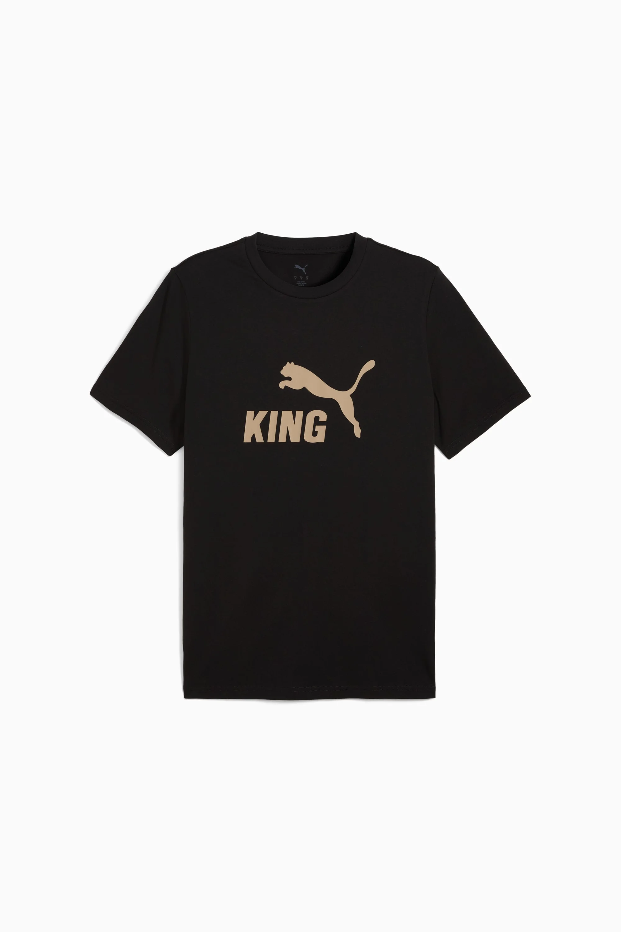 PRODUCT STORY Inspired by the legacy of greatness, this KING piece channels football heritage through elevated leisurewear. With archive-style details and a classic silhouette, it is made for those who lead with confidence, the true KINGs of the pitch and beyond. Endorsed by the elite, worn by legends in the making. FEATURES & BENEFITS - Made with at least 20% recycled cotton. DETAILS - Style: 660287_01 - Color: PUMA Black-PUMA Gold - Fit: Regular - Main Material: Pique - Neck: Crew neck - Short sleeves - Length: Regular - PUMA KING branding details MATERIAL INFORMATION - Shell: 100% cotton - Rib: 71% cotton, 29% polyester
