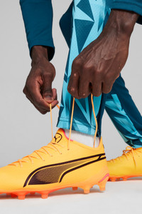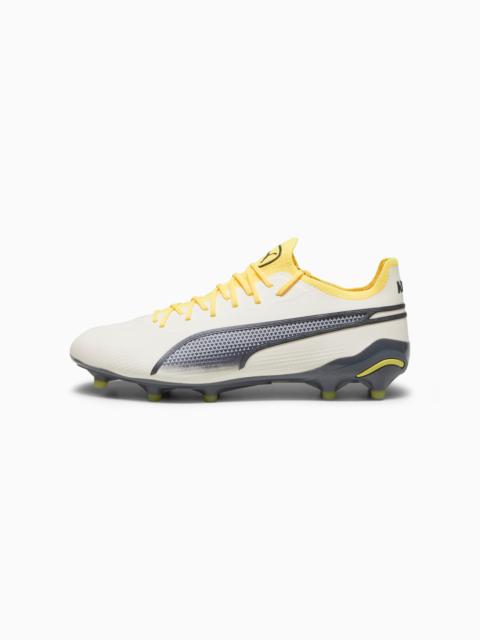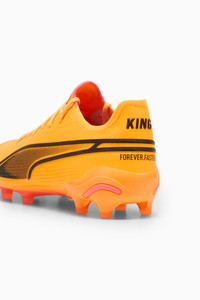 PRODUCT STORY For the new generation of KING, we took everything we know about ball control and made it even better. Reengineered for next level performance, these men's soccer cleats feature a comfortable and stretchy upper for improved touch and a lightweight outsole with conical studs for superior traction. Responsive and agile, you'll take your game to the next level. FEATURES & BENEFITS - Recycled Content: The upper of this shoe is made with at least 20% recycled materials as a step toward a better future DETAILS - Style: 107563_08 - Color: Sun Stream-PUMA Black-Sunset Glow - Knitted low-cut slip-on construction ensures a comfortable fit - K-BETTER upper made with 60% recycled nylon from post-industrial waste - Lightweight outsole with external heel counter, integrated stability spine, and conical studs for maximum manoeuvrability MATERIAL INFORMATION - Sockliner: 100% Textile - Outsole: 100% Synthetic - Upper: 100% Synthetic - Lining: 100% Synthetic