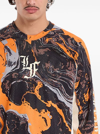 Lafrance marble-print mesh jersey Highlights - Orange - Marble print - Mesh panel - Long sleeves - Crew neck - Number one graphic Imported Composition Polyester 100%