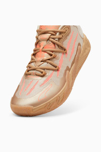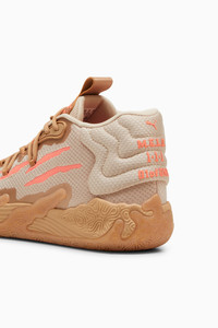 PRODUCT STORY LaMelo Ball’s third signature shoe MB.03 takes a trip to the never before seen alternative universe that is the Melo world. Highlighted by slime inspired rubber wrap-ups and an engineered knit upper with scratch cutouts, the MB3 is truly Not From Here. The slime sole and space-age PUMA Hoops tech make tournament ready look interplanetary. This version goes wild with a "Year of the Dragon" theme for the Chinese New Year. FEATURES & BENEFITS - NITRO™ Infused: Enclosed nitrogen-infused foam designed to provide responsiveness and cushioning in a lightweight package DETAILS - Style: 309716_01 - Color: PUMA Gold-Fluro Peach Pes - Engineered mesh upper with seamless construction with multi-zoned materials for targeted support, breathability, and comfort - TPU heel counter - NITROFOAM™ Infused midsole - High abrasion non-slip rubber outsole - LaMelo Ball branding - Chinese New Year theme MATERIAL INFORMATION - Midsole: 100% Synthetic - Sockliner: 100% Textile - Outsole: 98.30% Rubber, 1.70% Synthetic - Upper: 72.08% Textile, 27.92% Synthetic - Lining: 100% Textile